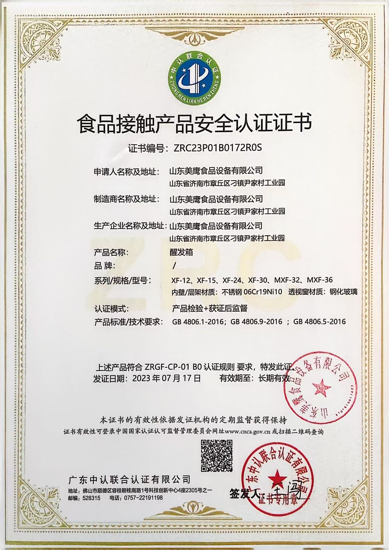 食品接觸產(chǎn)品安全認(rèn)證(醒發(fā)箱)