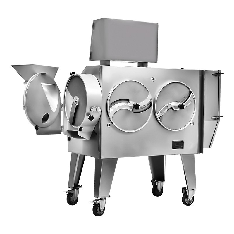 DQC140三變頻多用切菜機主要由機架,葉菜類切斷部分,根莖類切制部分,變頻器,,輸送帶,電動機,護罩等組成。